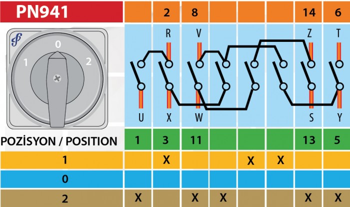 PN941 – 3 Fazlı Çift Devirli Çift Yön Kumanda Şalteri